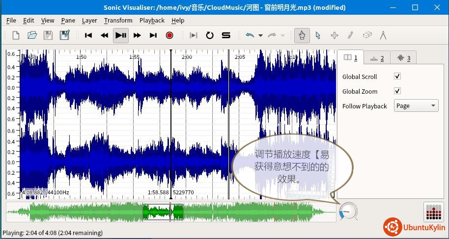 同时,页面上一些基础功能一目了然,彩蛋是笔者试用的时候通过调试播放速度(如下图),偶然收获了别(sha)致(diao)的快乐!(哈哈此处的彩蛋容易毁掉一首歌严肃的风格,建议学习或工作累了时放松使用。 【逃…)