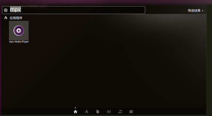 通过点击菜单栏中mpv播放器图标启动MPV,然后在显示区域点击"mpv Media Player"启动MPV,这种方式启动的MPV,其默认命令行参数为:“/usr/bin/mpv --profile=pseudo-gui --”,即为pseudo-gui模式,该模式使用一些内置的配置选项,该参数是在mpv.desktop文件中指定的,如:“Exec=/usr/bin/mpv --profile=pseudo-gui – %U”。如果想要播放视频文件,将文件拖入到界面中即可开始播放。