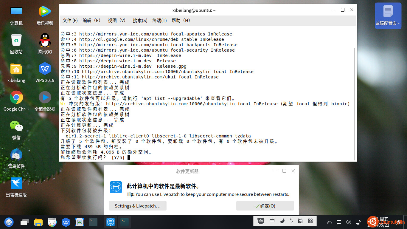 一问:终端里有更新,软件更新器里却显示最新? 二问:终端里提示:冲突的发行版,是否有影响?