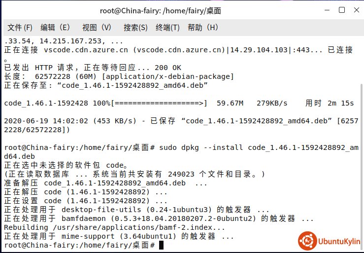 sudo dpkg --install code_1.46.1-1592428892_amd64.deb