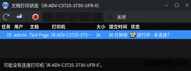 打印任务里再跳未连接,进行中。重启也不行,驱动安装完第一次能打印,后面就不能答应了,驱动是从佳能官网下载的。CPU框架是amdX86,系统是优麒麟V10(SP1)麻烦大神给看下,谢谢
