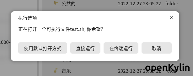 - 设置dconf全局默认配置executable-text-activation --不过好像ubuntu有dconf-editor,openkylin没有这个ui工具,不敢随便乱改,放弃.