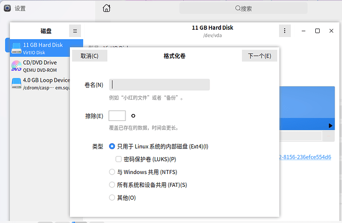 办法总会有的,在在虚拟机里新建一个虚拟磁盘 data.img (QEMU-KVM是img后缀,其他虚拟机是别的后缀),大概10个G以内,和liveCD一块在虚拟机内启动,使用磁盘工具,