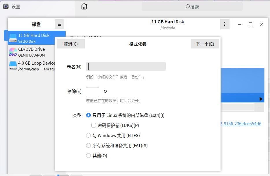 格式化创建的虚拟磁盘。