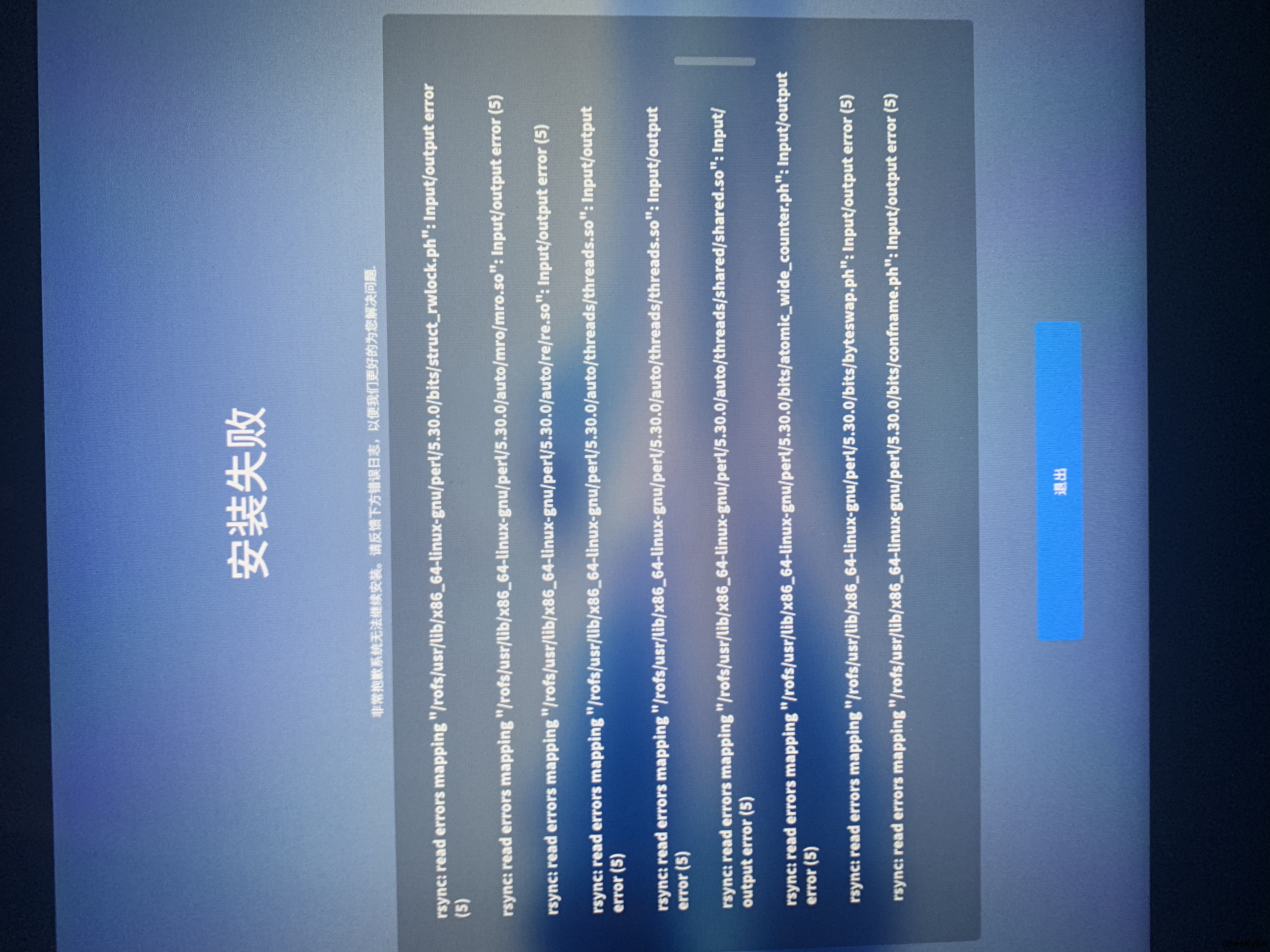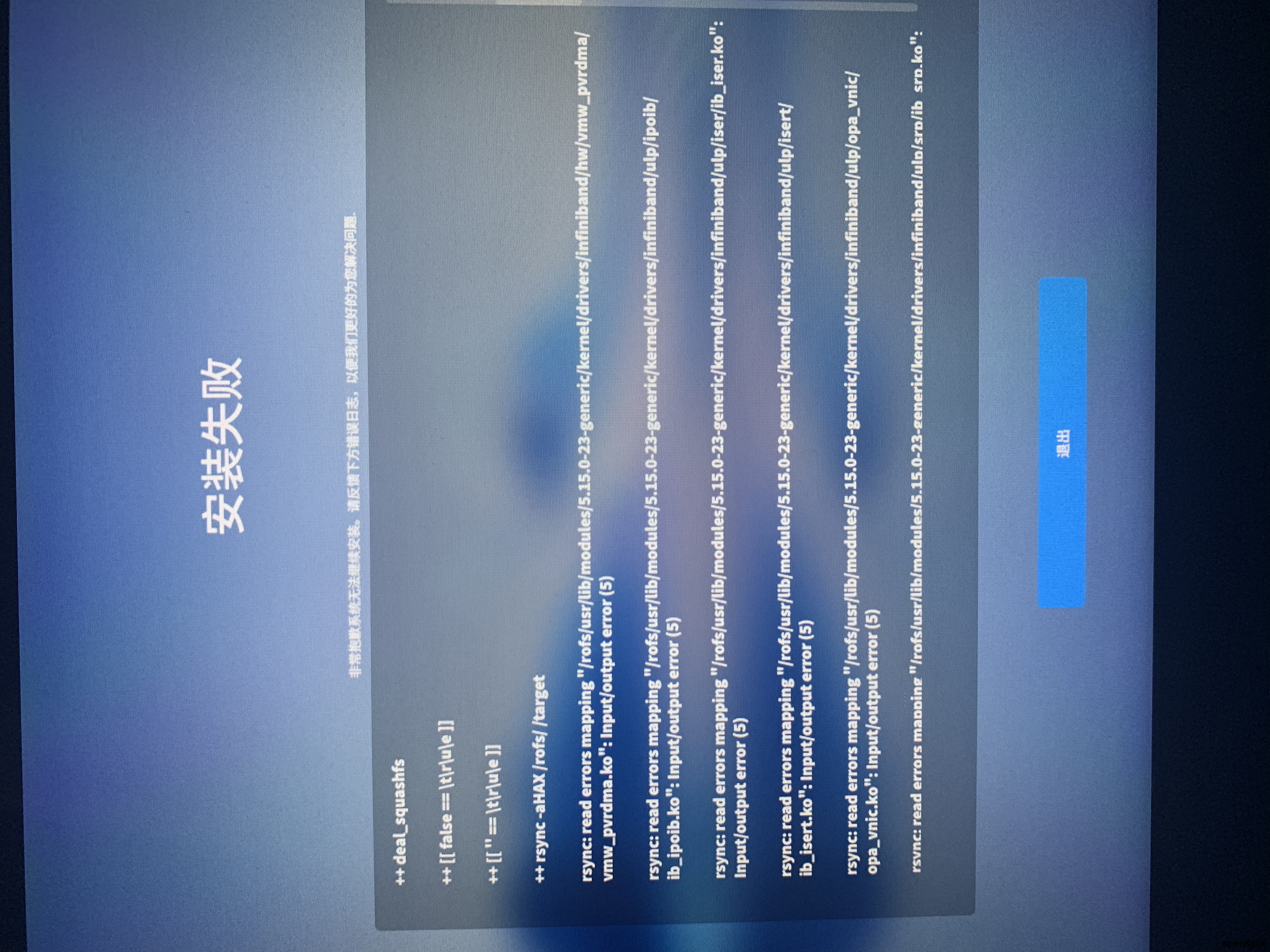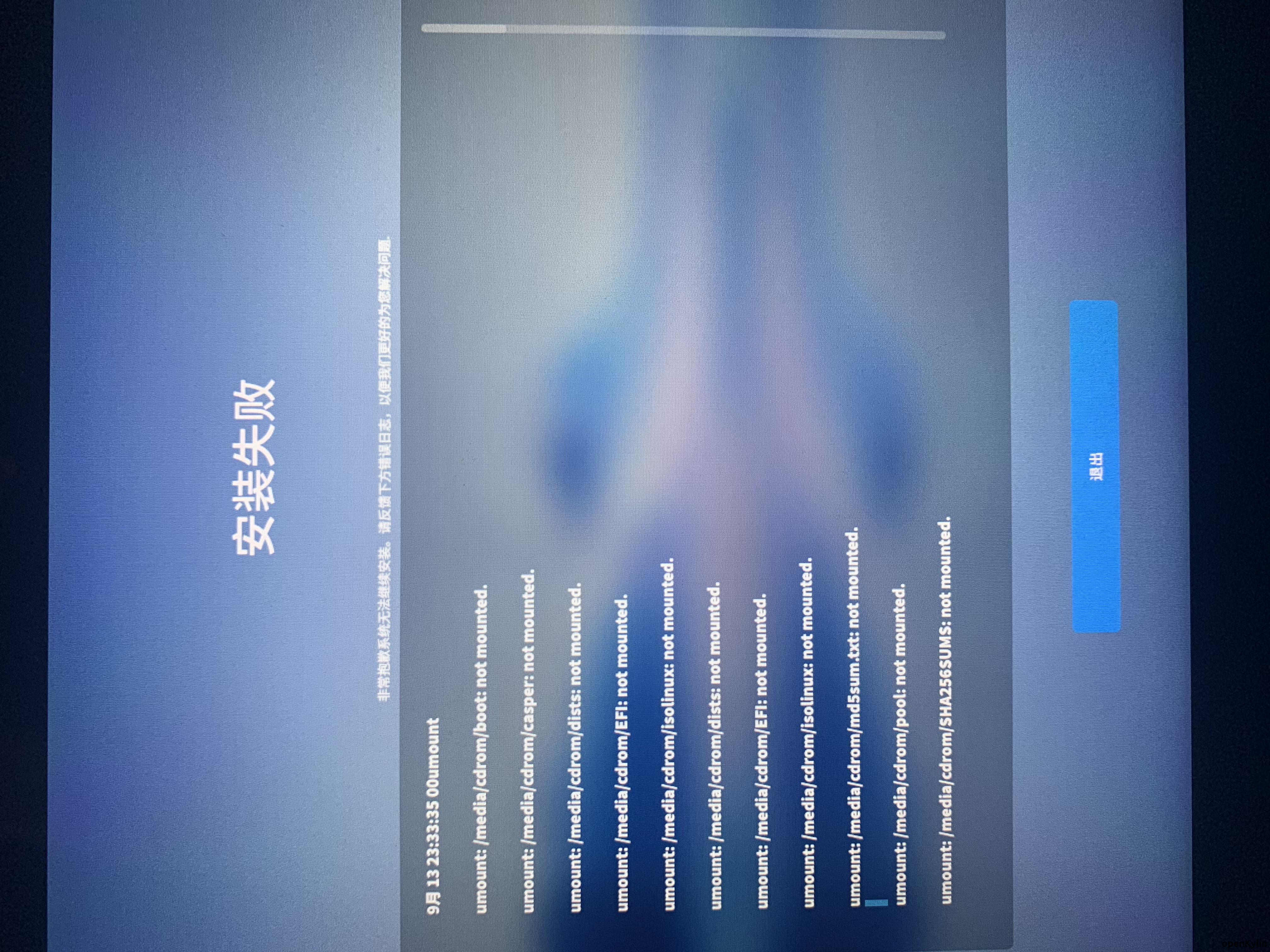想多分区安装搞一个双系统,分了一个50g的分区,用ventoy启动最新1.0的iso,进去桌面点击安装的,选择50g的分区后,选择ext4,根分区/,然后安装,一堆报错,最后进度条走到100提示安装失败,iso的md5校验也是对的,报错如下图,报错太多,也没拍全