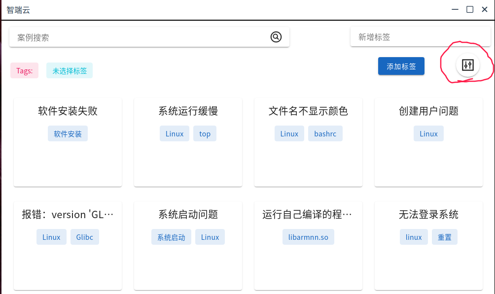就是这个东西,就是一个问题和解决方法库,里面有很多的案例,可以利用标签和搜索找到相应的案例,每个案例都有几个标签,点击标签就可以定位案例,里面有解决方法,由于能力有限,无法做到点击案例后一键载入终端并执行相应的命令,如果的deepini如果想接入的话,可以考虑考虑增加这个功能,因为我用AI工具找的案例,所以有一些案例没有任何具体做法,我以后会把它们删掉。