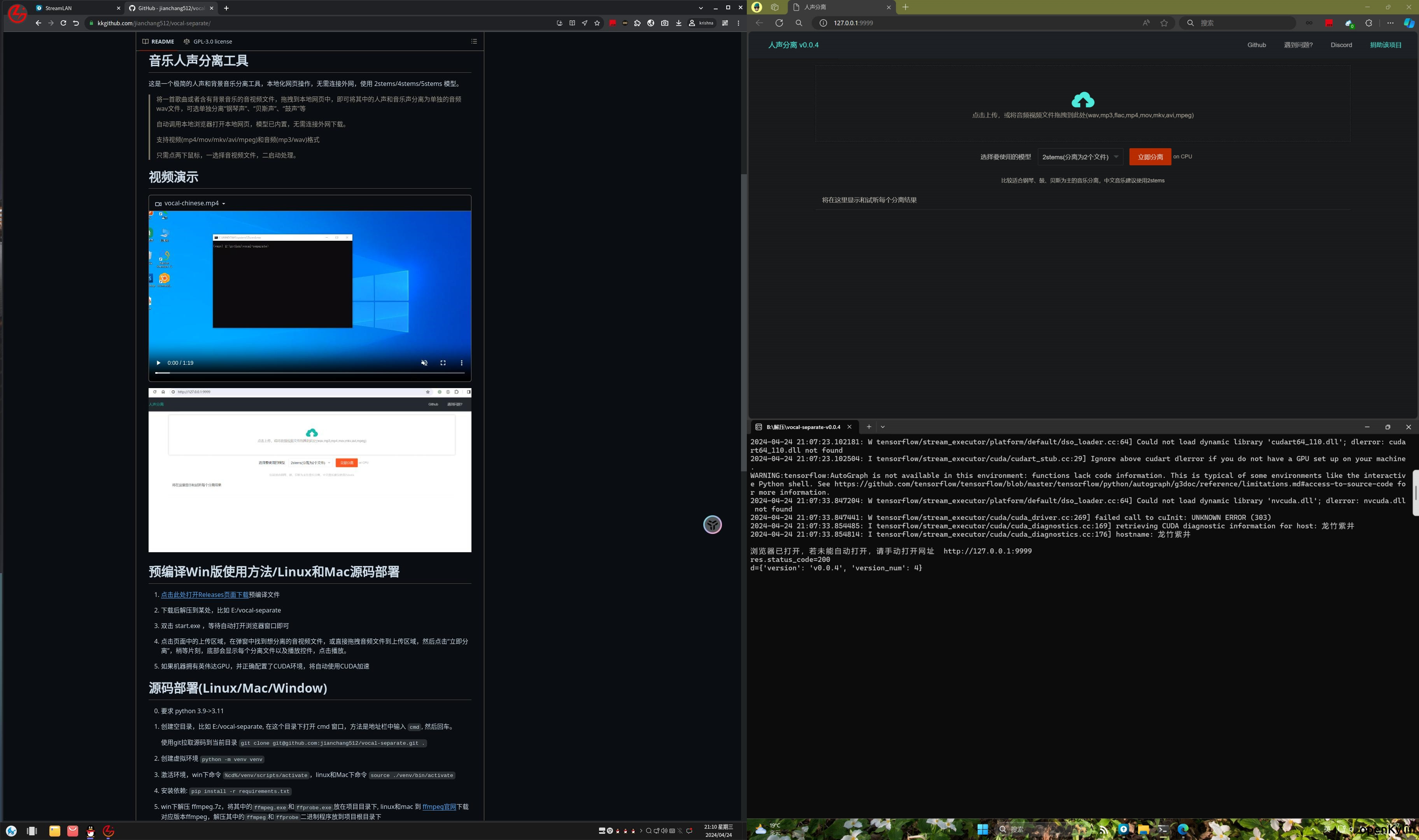 刚才又把之前爱看得博客从头到尾看了看 之前使用得时候没有发现 这款音频人声分离工具 居然支持Linux运行 我还以为AI发展得时代 都几乎忘了Linux发行版