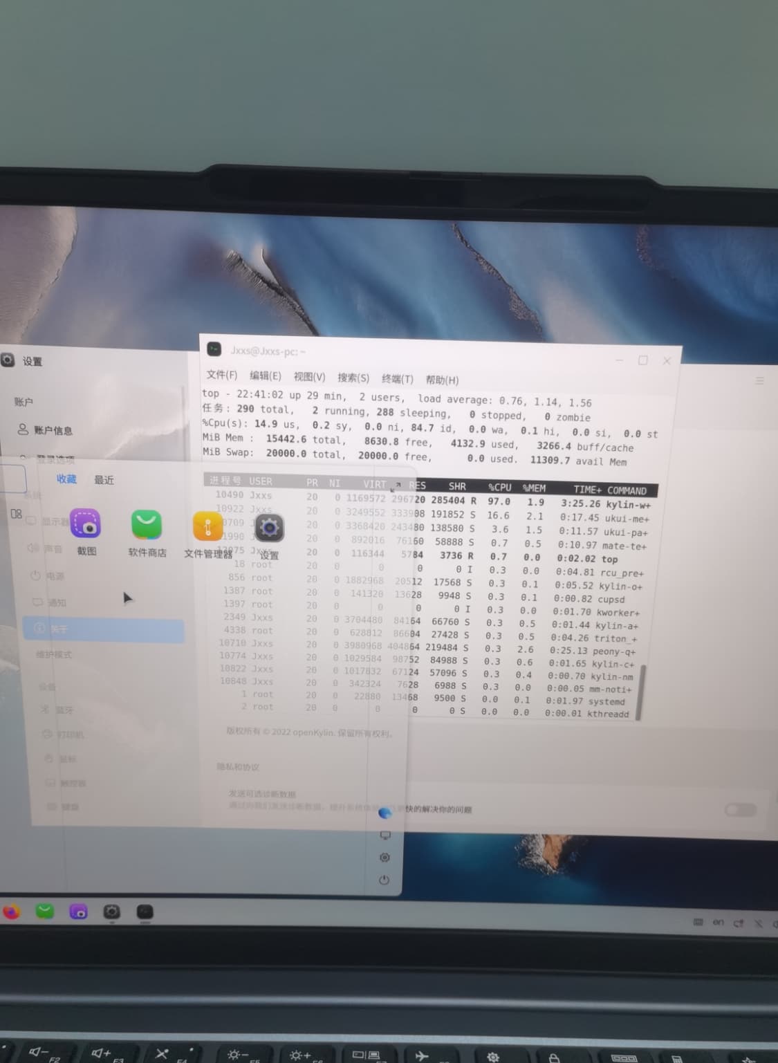 如题,看cpu占用,kylin-wlcom进程占了98%,只有 在把终端全屏的时候才会降低,但是一旦使用了左下菜单,CPU占用有上来了,卡到不行。 求大佬解惑