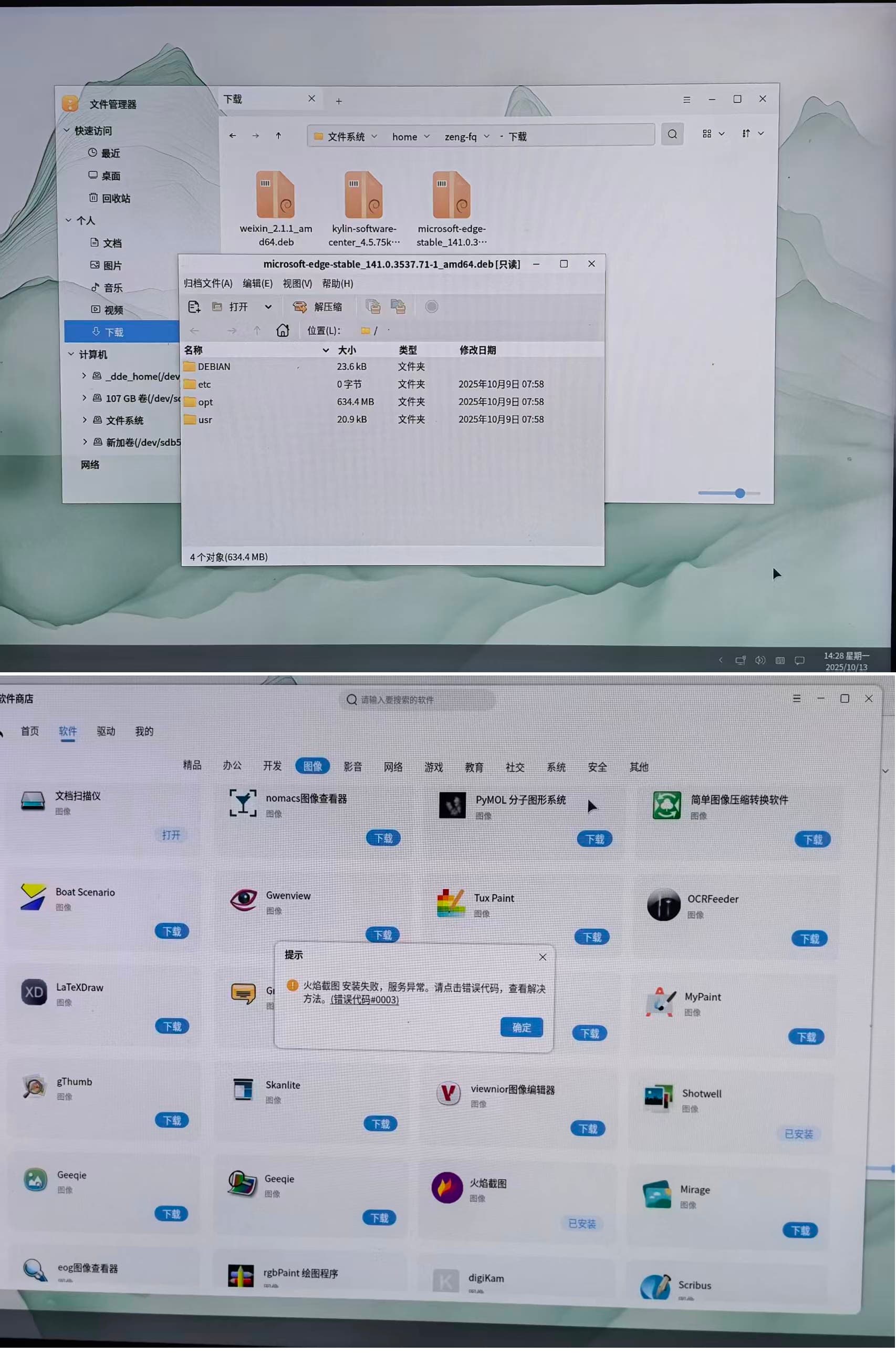 我是菜鸟一个,今天安装了25.10版本的系统,界面很好,就是感觉应用安装挺难的,下载好的微信和edge浏览器,都是deb格式的,不知道为什么打开就是解压,在deepin系统都是打开直接安装的,另外软件商店里的应用也是安装失败,