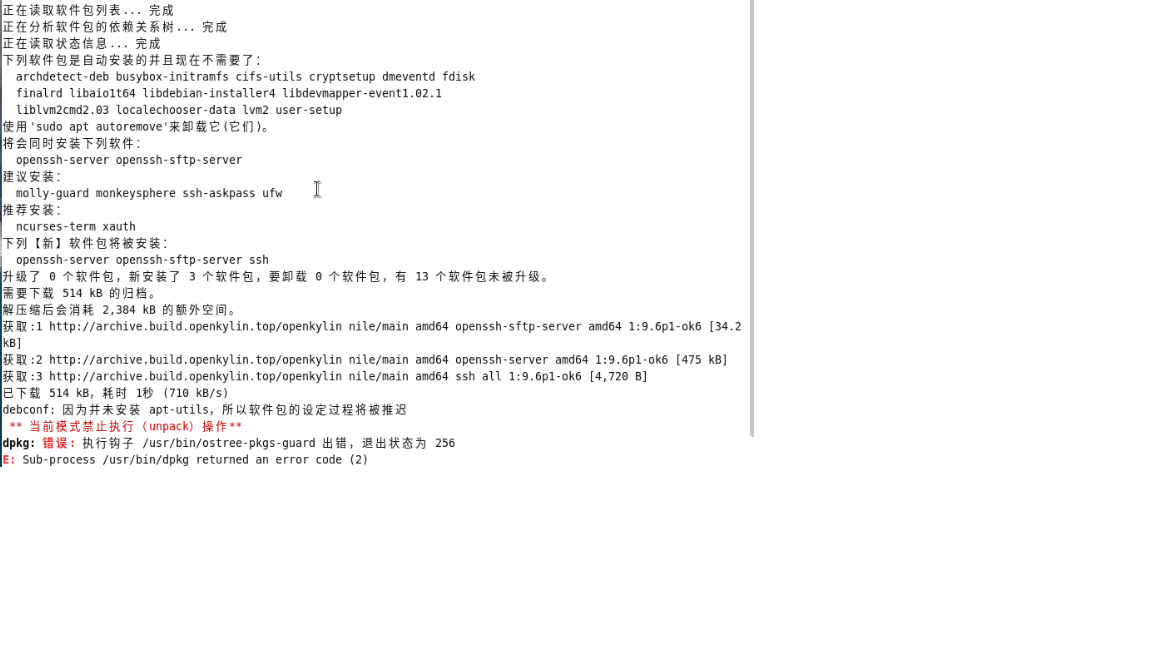 openkylin 桌面版今天又尝试安装SSH服务 运行sudo apt -y install ssh