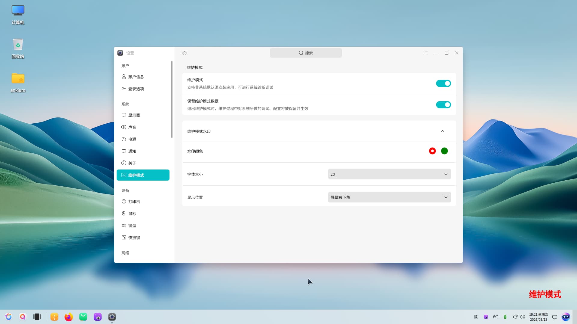 - 开启维护模式后的桌面水印多余,且默认水印遮挡全屏开始菜的个别操作选项