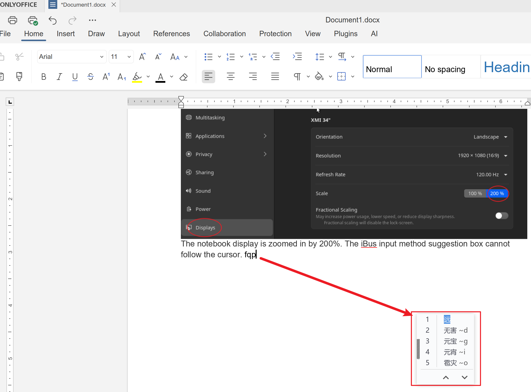 ubuntu24.04.04 + 屏幕放大200%则 ibus 输入法候选词离光标太远