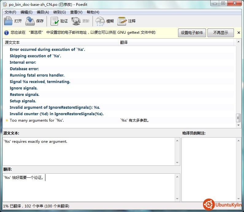 3.软件翻译者完成po文件中字符串的翻译,这是开源软件翻译的工作主体