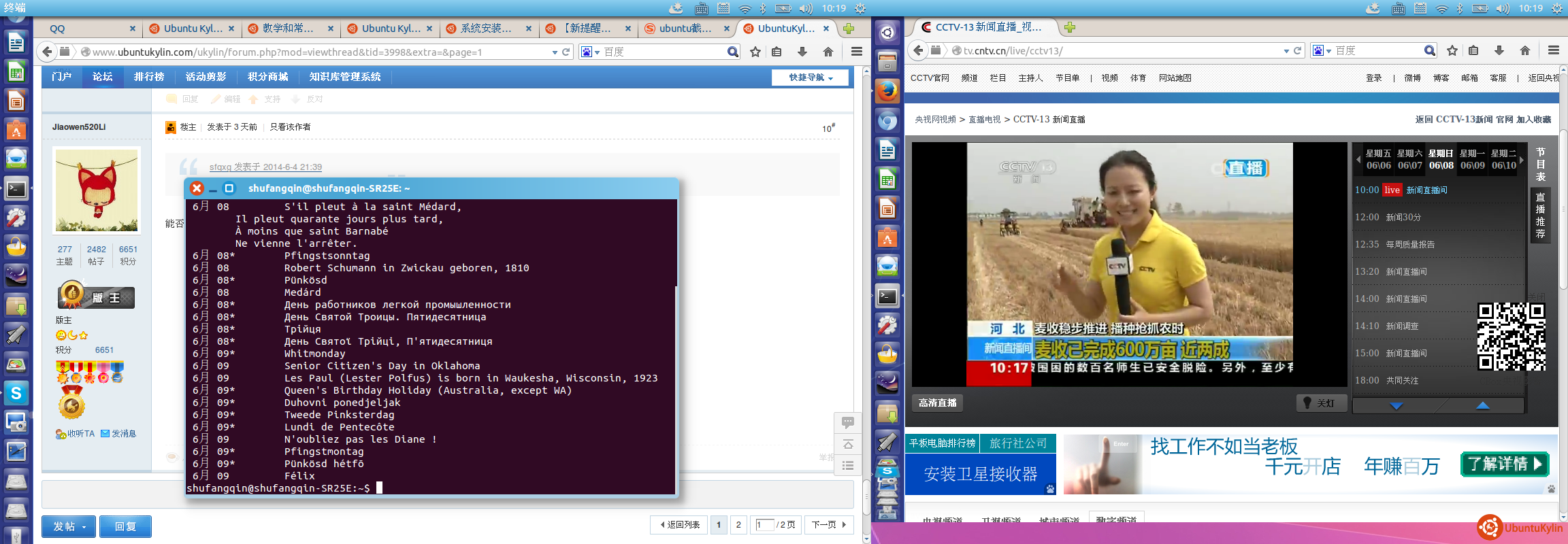 2.点击启动器(Launcher)最上方的Dash按钮,在出现的Dash界面搜索框输入“中国农历”或者“chinese-calendar”。