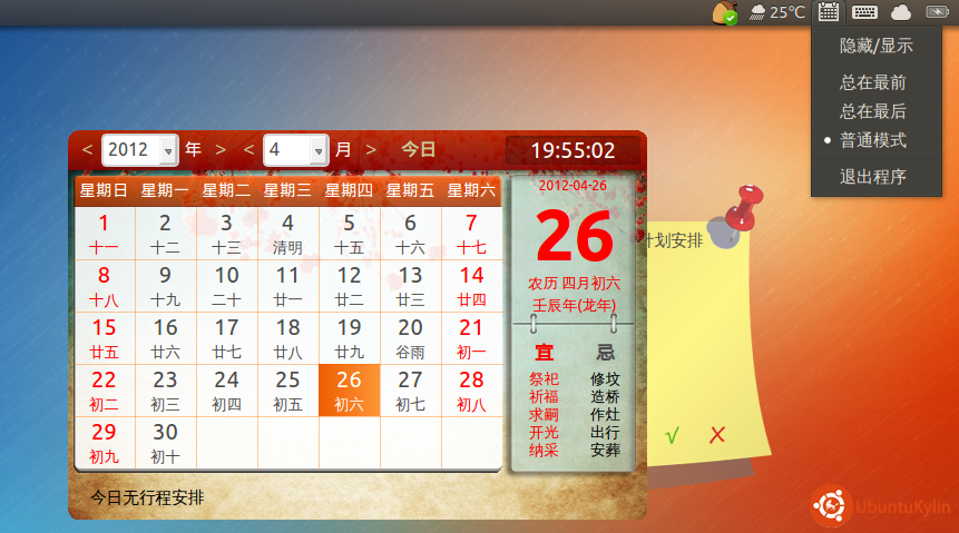 ※点击“普通模式”按钮,中国农历插件的程序主窗口是否作为一个普通应用窗口被显示(根据情况显示/覆盖)?