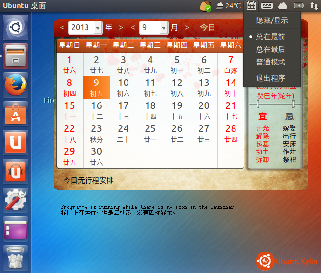 ※此时再次点击下拉框的“隐藏/显示”按钮,中国农历插件的程序主窗口是否被隐藏?