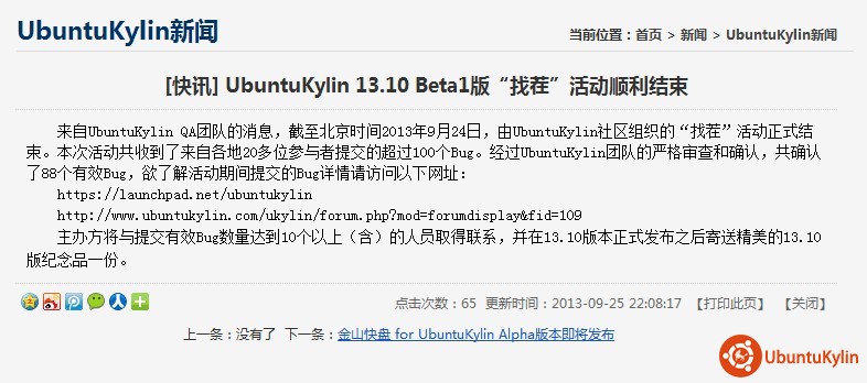 PS:今日即将发布 UK13.10 Beta2 版本,欢迎大家下载试用,将“找茬”进行到底!为UbuntuKylin多提意见和建议,促进UbuntuKylin的快速成长!嘿嘿~