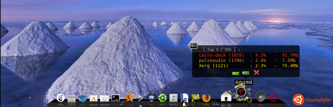 他不光好玩功能还很强大,它集成了系统监控,天气,时钟,调用终端,好多功能我还是不说了,说的够多了我要睡觉了,