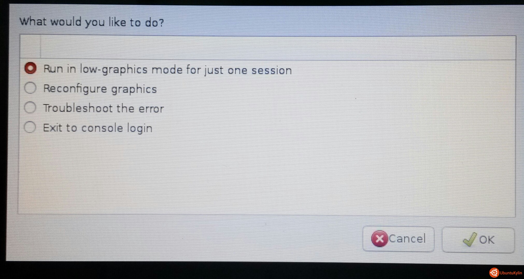 1run in low-graphics mode for just one session