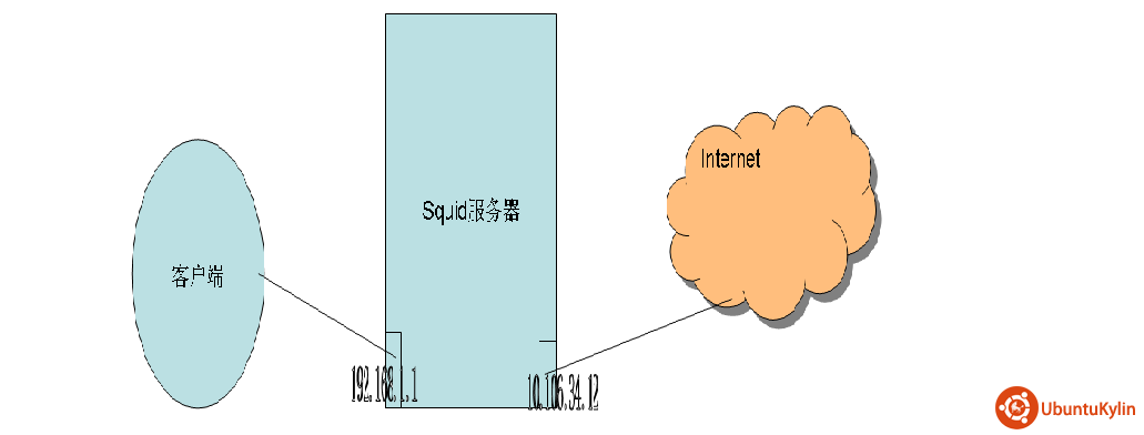 a.squid服务器上的配置 准备环境:软件包:squid(任意版本) 双网卡:eth0:192.168.1.1 eth1:10.106.34.12 如图: