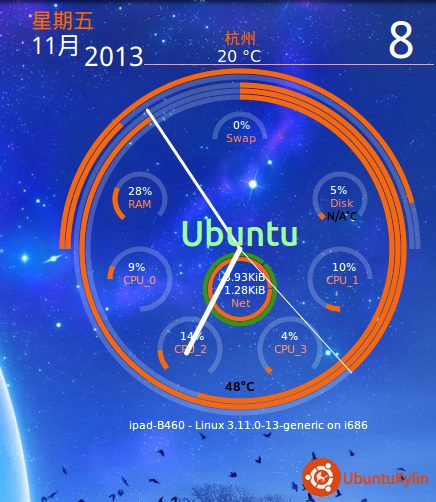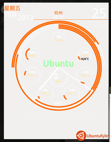 问题解决了: 代码文件免费下载(适用ubuntu13.10)安装方法:桌面conky工具