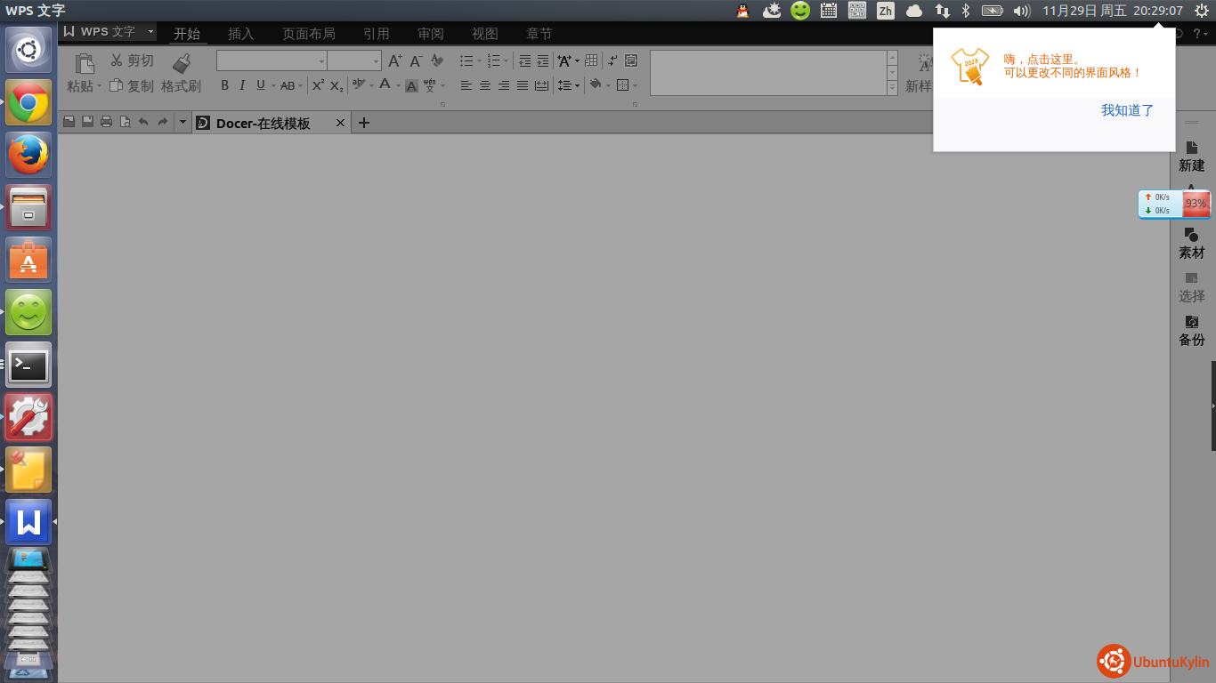 打开文档,迅速关闭在线模板,然后在选项里面设置启动打开新文档后,每一次打开WPS就会打开新文档,不会存在卡死的现象。