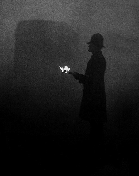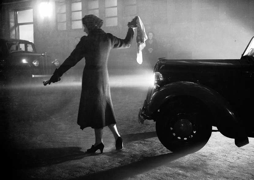 1938年10月25日,伦敦摄政公园附近,大雾之下能见度极低,一名女子拿着手电筒为汽车引路。