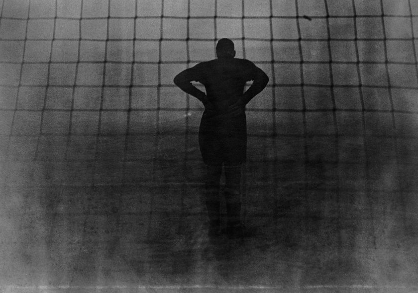1937年12月6日,英国足总杯半决赛,米尔沃尔队门将皮尔森透过浓雾寻找对手。