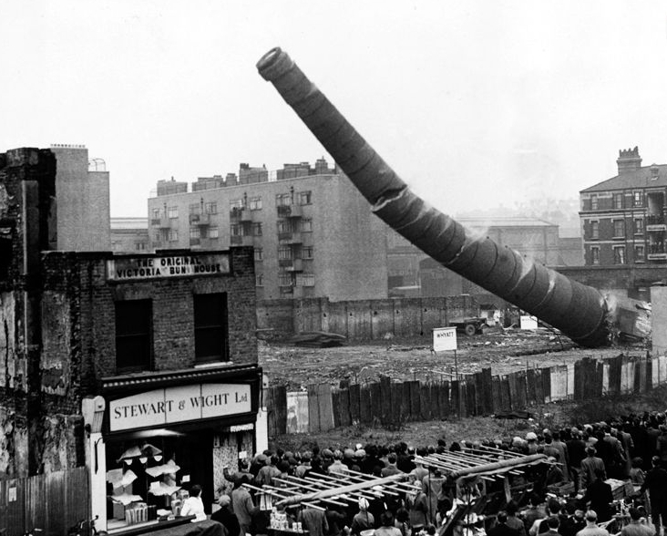 这场悲剧终于使英国人痛下决心整治环境。1956年,英国政府颁布了《清洁空气法案》,大规模改造城市居民的传统炉灶,减少煤炭用量,冬季采取集中供暖;在城市里设立无烟区,无烟区内禁止使用产生烟雾的燃料;发电厂和重工业被迁到郊区。图为伦敦市区一座烟囱被拆除。