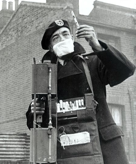 1968年,英国又一次颁布法案,要求工业企业建造更高的烟囱,以利于污染物的疏散。1974年的《控制公害法》囊括了从空气到土地和水域的保护条款,添加了控制噪音的条款。图为1954年11月16日,一名技术人员监测空气质量。