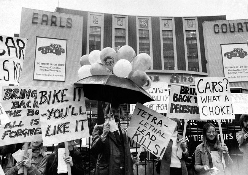 最开始,伦敦治污的法案和措施主要是针对燃煤的控制。20世纪80年代前后,汽车数量开始爆炸性增长,大量的尾气取代燃煤成为主要的大气污染源。伦敦治理空气污染也做出相应转向,开始控制市区汽车数量和尾气排放。图为1973年10月16日,环保组织集会,要求政府遏制汽车尾气污染。