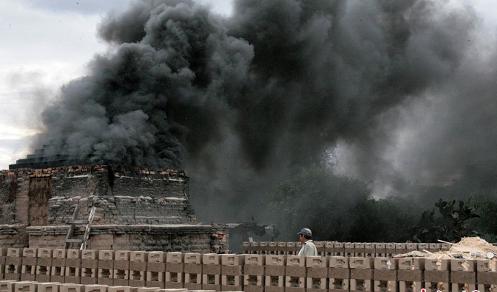2009年12月4日,墨西哥San Luis Potosi,砖窑厂排放出的尾气。