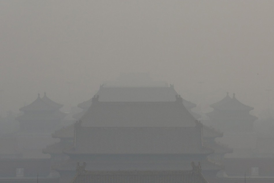 1月16日,北京,被薄雾覆盖的故宫博物院。