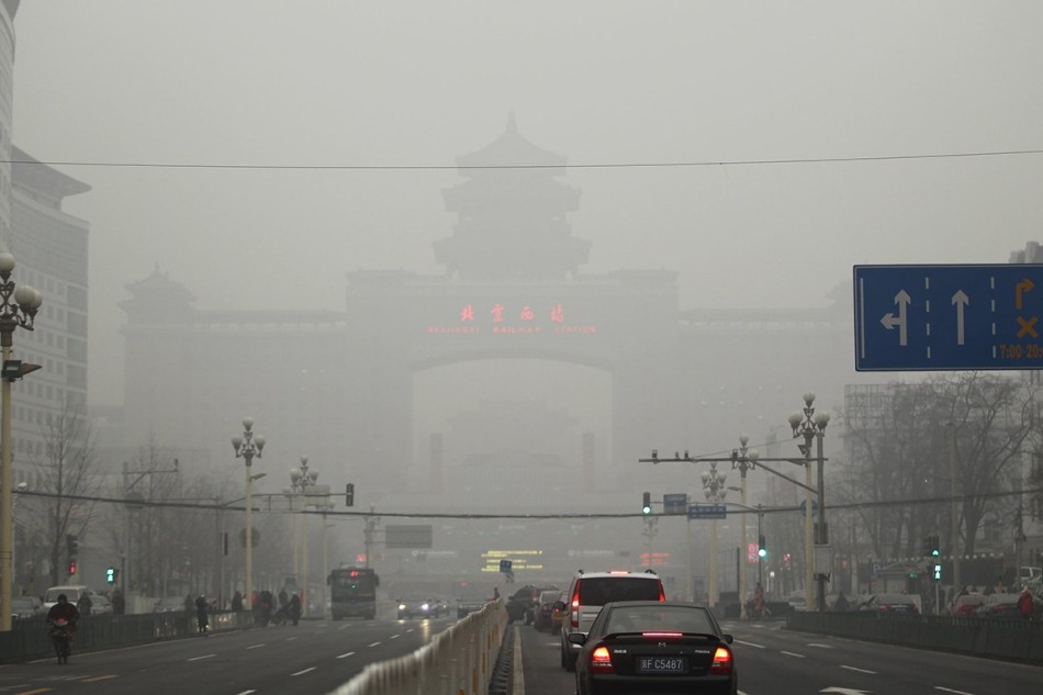 1月12日,笼罩京城的雾霾仍在继续,北京PM2.5指数濒临“爆表”,空气质量持续六级严重污染。中新网记者 金硕 摄
