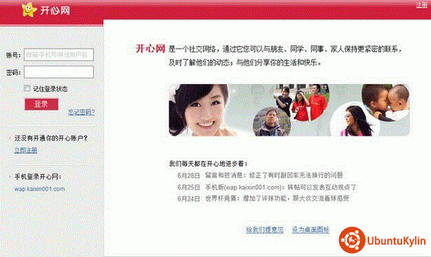 开心网由北京开心人信息技术有限公司创办于2008年3月,用户群体是办公室白领。可提供包括日记、相册、动态记录、转帖、社交游戏等社交工具。截止今年6月底,开心网注册用户数1.4亿,月活跃用户约为2000万。