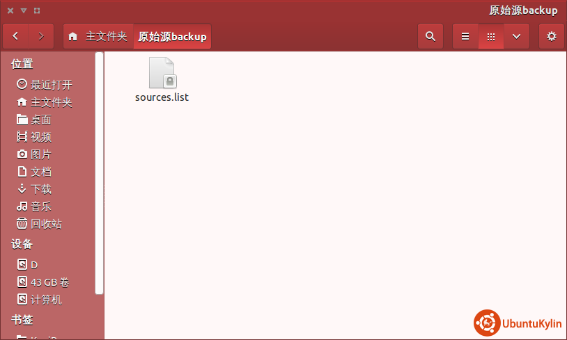 把ubuntu源列表拷贝出来到我们刚才建造的文件夹内