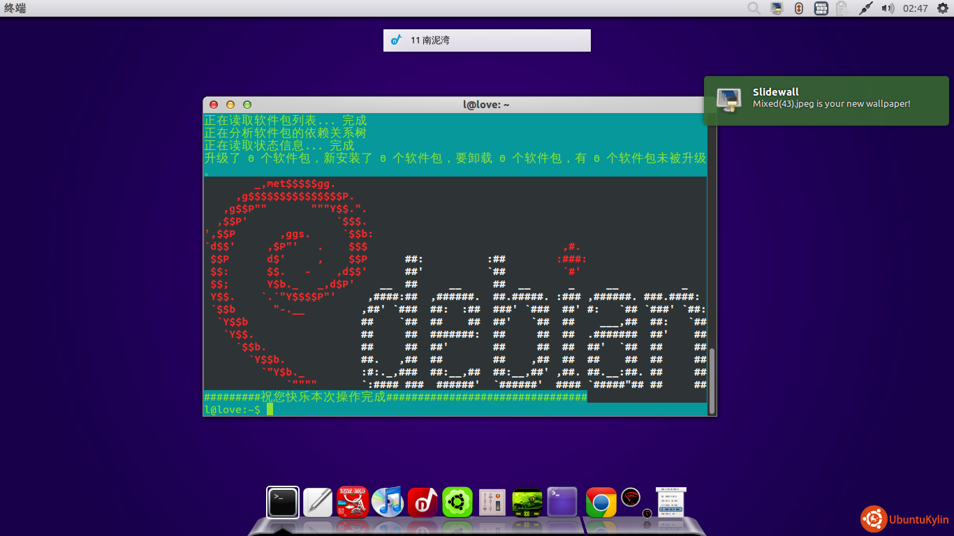 ubuntu系统作为基础导入了deepin的软件应用,导入pearos8的应用由于os8貌似还有点发脾气,还没有驯服,有喜欢他主题的朋友对我手我安装生成了缓存上传给你拿去玩,,不是我小气,源给你安装等于害死你,起了冲突解决不了就是一个死,,等我驯服了连方法带源列表一起贴出来,,我安装的效果不好,希望朋友们给我指导,遗憾的就是左上角的ubuntu桌面标题,我没有取消换成梨子的图标,,