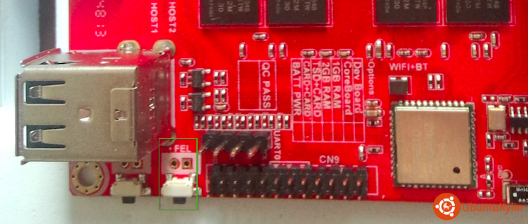 []电脑一方先接上 USB 线,之后按住 Cubietruck 的 FEL 按钮(此按钮在 RESET 按钮的边上,详见下图)不放,此时将另外一端的 mini USB 和 Cubietruck 连接,这时候会弹出一个格式化的提示对话框(假如无法弹出格式化提示对话框,那么将 Cubietruck 接上电源再试试),然后就可以松开 FEL 按钮了