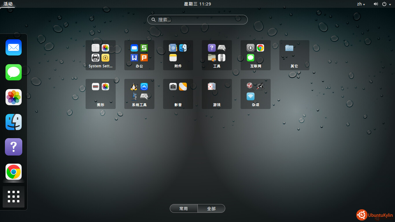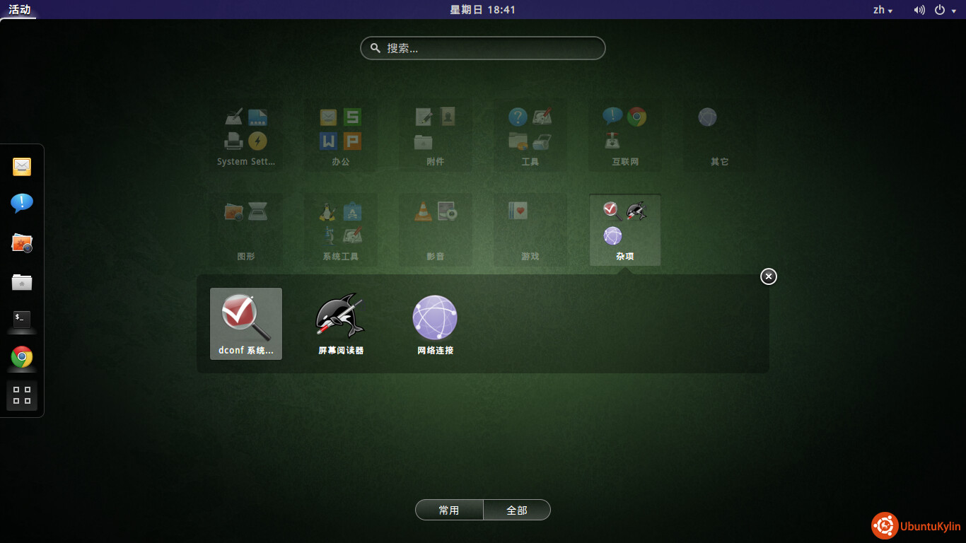 后来用到ubuntukylin发现unity又有点为难我,我本想用它的,的确它也很好用,因为这个团队也花了些工夫,现在比较适合我们使用了,可我是个讲效率的人,一打开unity,我要找的程序呢?好不容易找到,我的时间又花很多,我又不愿意花这么多的心思在查找程序上面,所以我选择了gnome3这个似乎和unity差不多,好歹我看到了和苹果类似的文件夹的影子,这个还比较适用,可开发者不知是什么原因,只弄了两个,一个是工具,一个是其它,其它的就没有了。这时我就在想,如果多几个,也许效率会高点儿,后来真的找到了增加文件夹的方法,果然不错,对,就这样了。