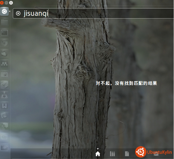 前面说了unity的搜索如何好,这里我就说说它又如何不好。上面的演示都是输入的英文,你以为我这里会说输入中文的问题吗?不,我觉得就不应该存在输入中文的问题。因为之所以前面讲unity的搜索的强大是因为在很多情况下使用unity的搜索能比使用鼠标更高效。可是你想想如果你要搜个“计算器”,然后你得输入这三个汉字,那费的时间可比鼠标慢多了,我希望我输入jsq或者jisuanqi就能出来“计算器”这个应用程序。可是…看图