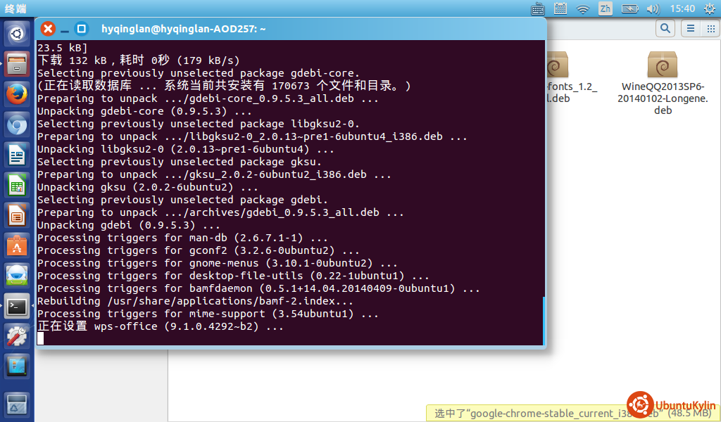 而wps-office:存在i386和amd64双平台,且无论在UK的软件中心提供安装,还是下载独立的安装包,实际上都是安装不上amd64的(配置错误,无法使用)
