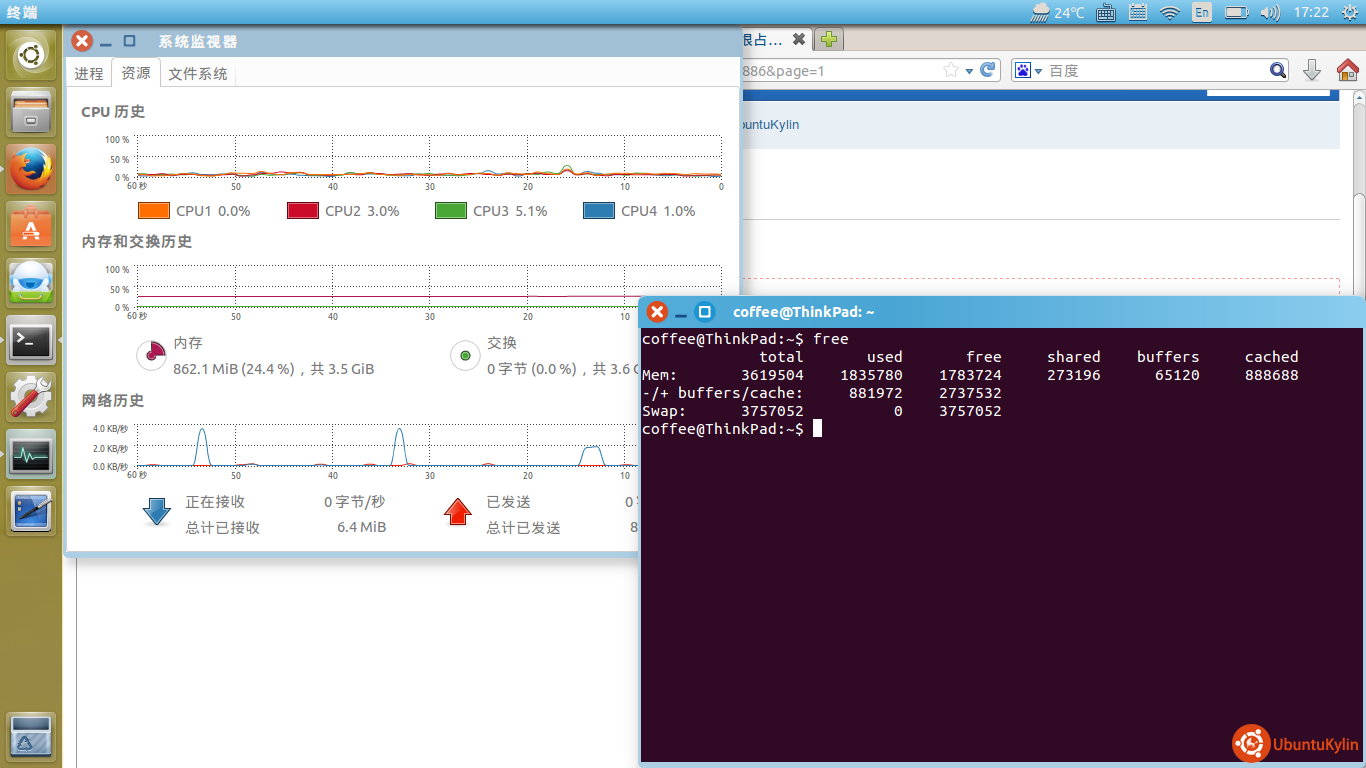 上面是我公司电脑,现在我贴出家里电脑的情况,free命令跟系统自带的系统监视器结果有很大差别啊。是怎么回事呢?
