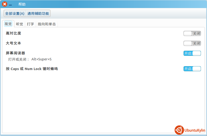 4。 通用辅助功能,谁能告诉我,如何开启“按Caps 或 Num Lock 键时蜂鸣” 我打开了,但是就是听不到声音。。。。