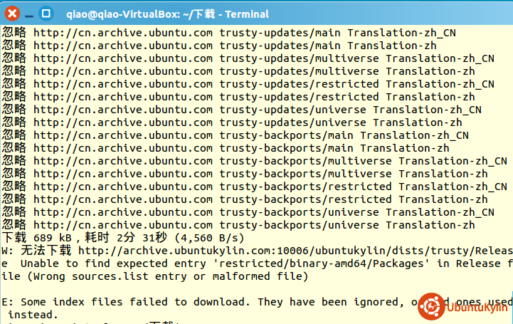 W: 无法下载 http://archive.ubuntukylin.com:10006/ubuntukylin/dists/trusty/Release Unable to find expected entry ‘restricted/binary-amd64/Packages’ in Release file (Wrong sources.list entry or malformed file)