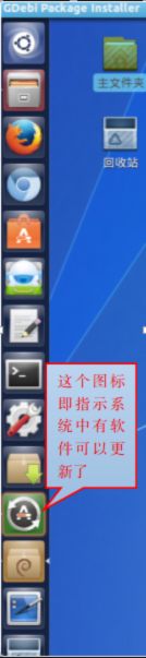 其实,UK14 默认情况下,是会自动从软件源中发现软件更新的。我们在进行前面那些操作的过程中,系统早就已扫描到了有软件需要更新了,并且还在启动器上给出了提示。请看下面这张图(图1):
