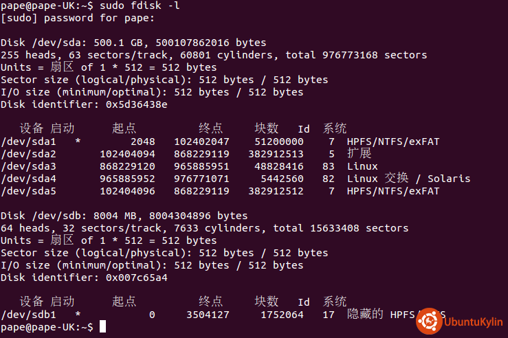 下面是fdisk -l的结果: