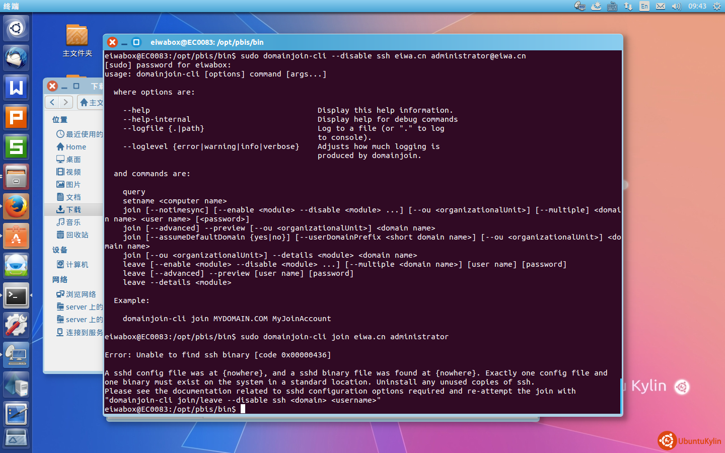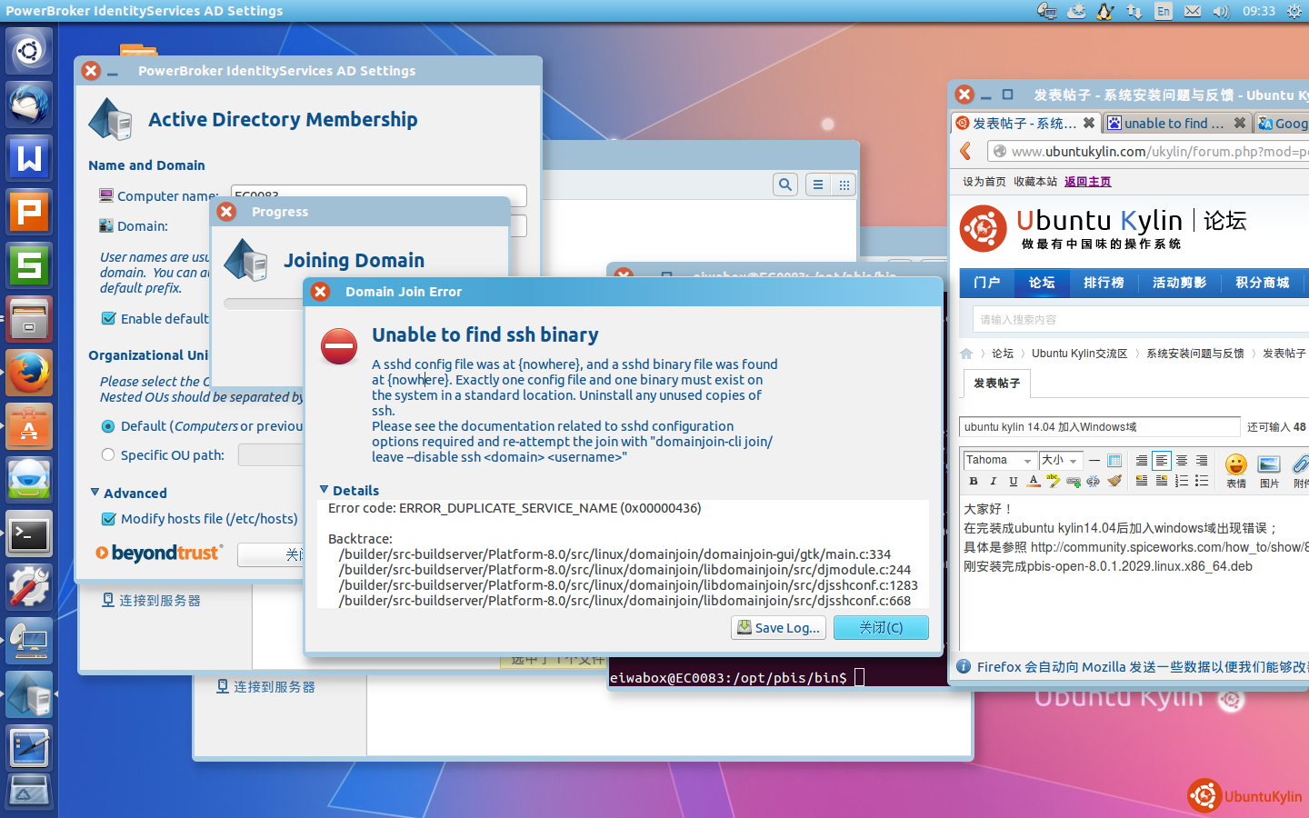 在完装成ubuntu kylin14.04后加入windows域出现错误;