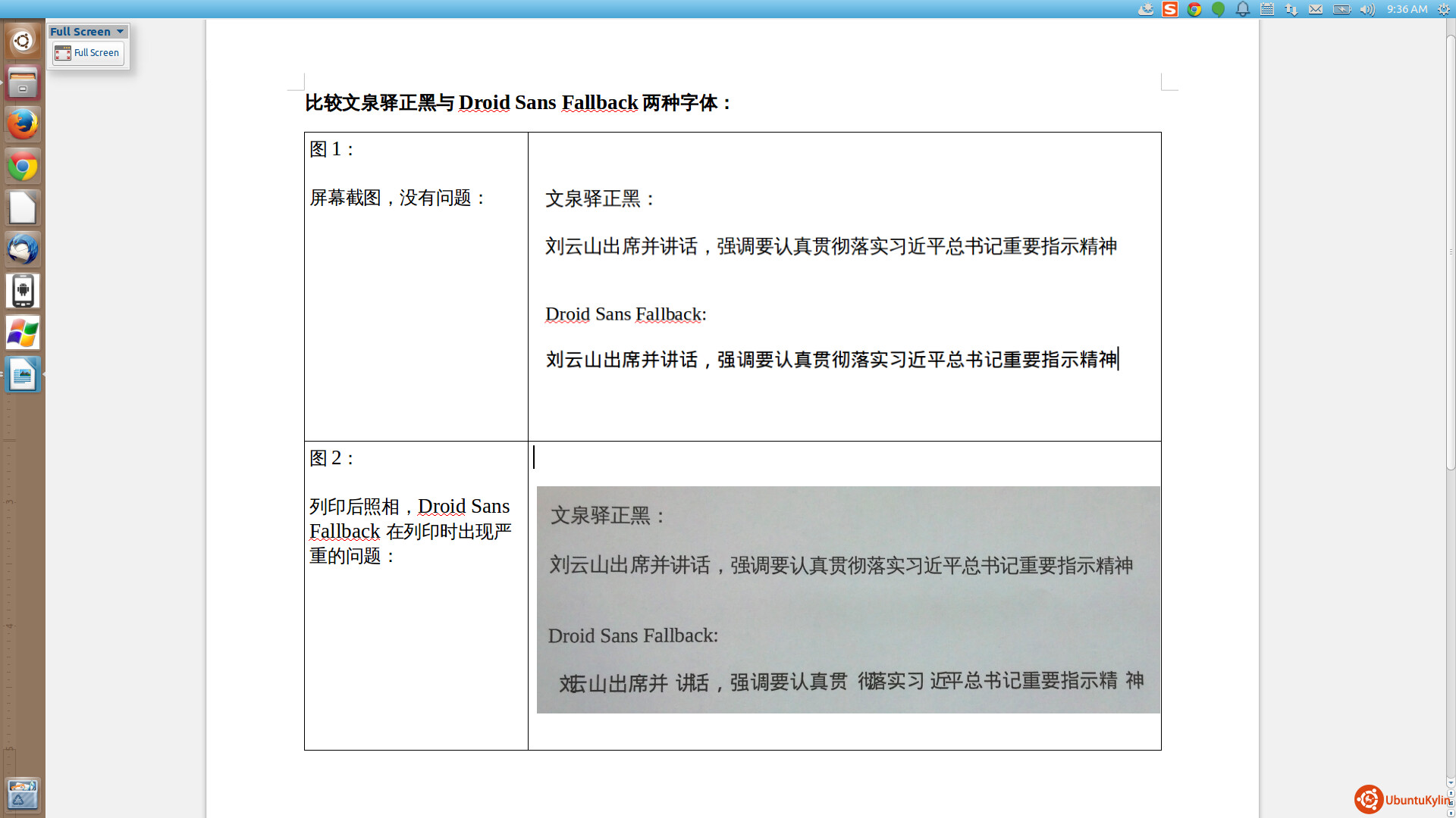 UK1404的ISO里只包含了LibreOffice为唯一的办公室软件,Droid Sans Fallback则是唯一的中文字体。在这种环境下,如果我们连列印中国最高领导人的名字都有问题,我觉得我们是应该探讨路线是否需要稍微修正一下?
