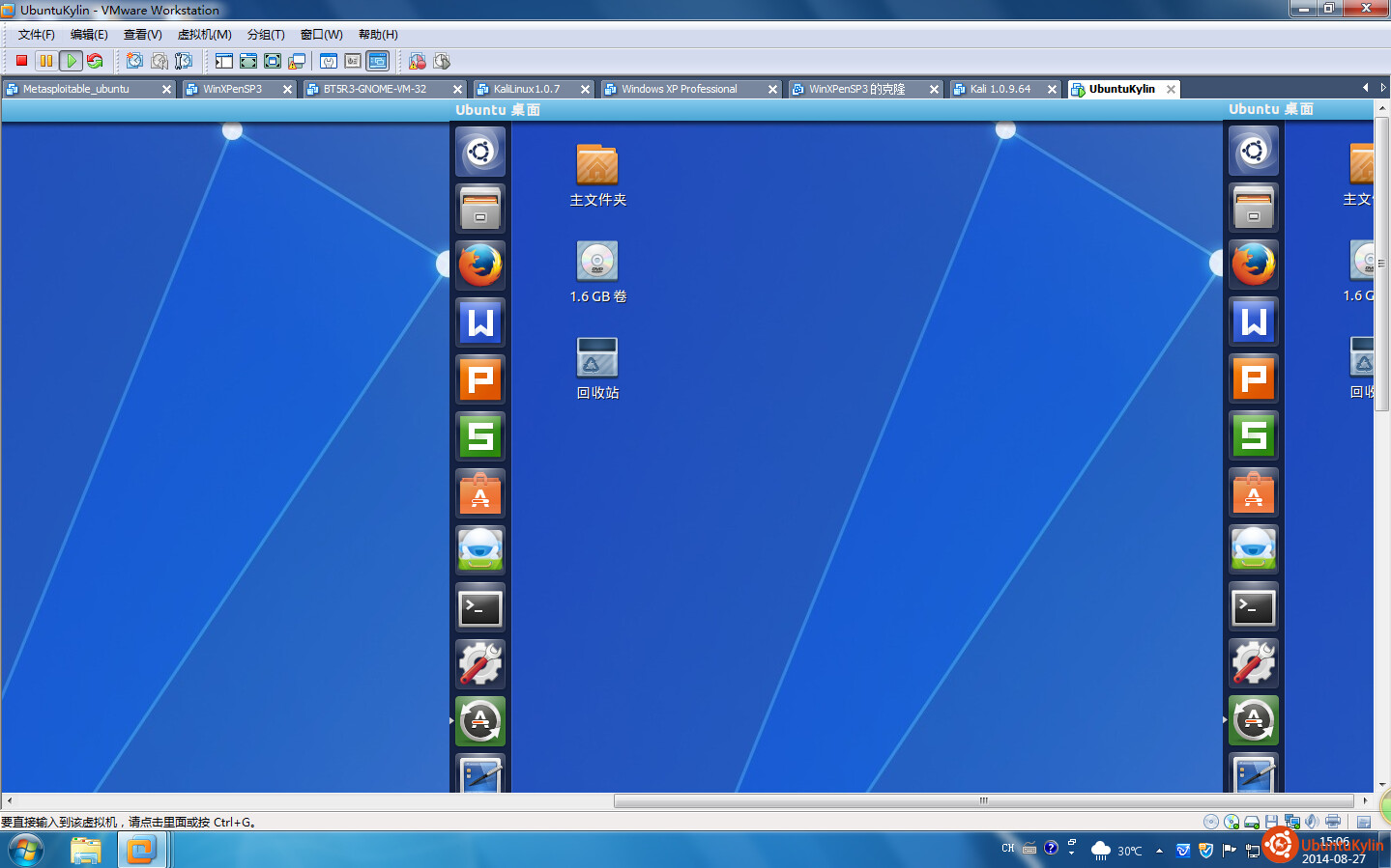 今天在win7里用kvm 7.0虚拟机,虚拟安装了kylin 14.04试用,虽然安装过程一切正常,但登录桌面后,桌面却变成了四列花屏,怎么办?
