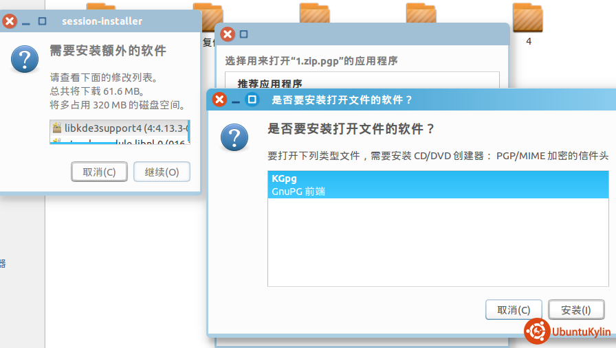 另外,创建的gpg文件在nautilus下没法打开,ubuntu推荐的是kde环境下的图形软件KGpg,下载安装要好久。